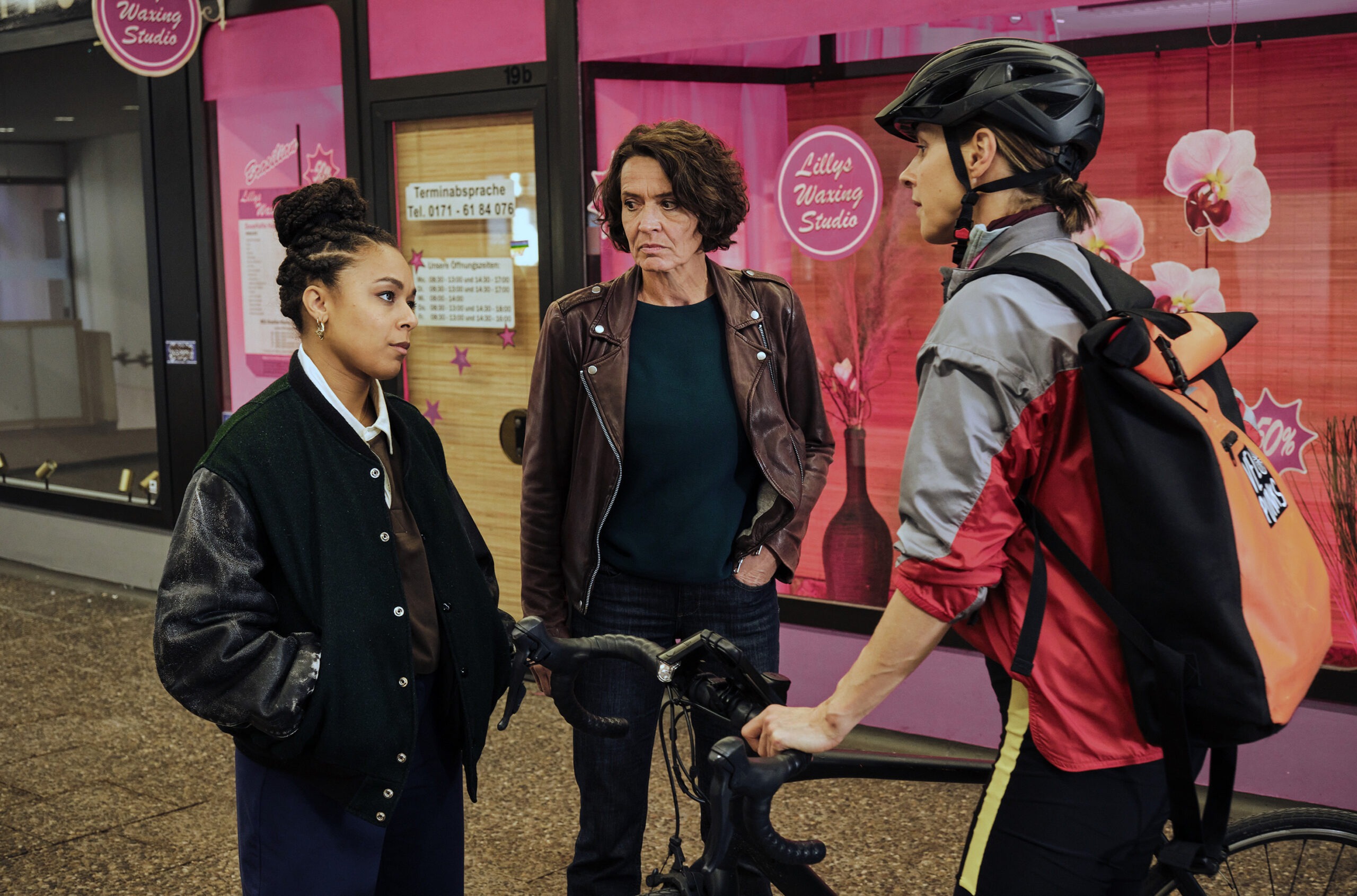 Sämtliche Nebenfiguren – das schließt den in zwielichtigem Kontakt zum Kollektiv stehenden Unternehmer Benjamin Menz (Robert Stadlober, Spur des Blutes) mit ein – wirken wie überzeichnete Holzschnitte. Vielschichtige Charaktere, die über Schubladen hinausgehen, sucht man vergeblich. Da braucht es etwa für die vermeintlich integre Firmenchefin, die ihre Fahrradkuriere Fentanyl unters Volk bringen lässt, einen Sohn mit Querschnittslähmung, der auf eine teure Behandlung in der Schweiz angewiesen ist und so die illegalen Machenschaften seiner besorgten Öko-Mutter rechtfertigen soll – plumper kann man es kaum konstruieren. Auch die bisher so erfrischende Polizeianwärterin Mara Hermann (Davina Fox) und Assistent Nico Langenkamp (Johannes Scheidweiler) sind diesmal Gefangene des schwachen Drehbuchs.